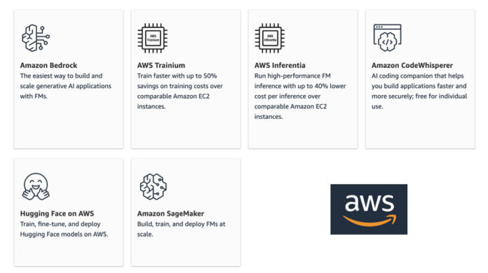 AWS ofrece varios servicios de IA generativa, como Amazon CodeWhisperer , un compañero de codificación impulsado por IA y Amazon Bedrock, un servicio completamente administrado que crea modelos fundamentales (FM) de AI21 Labs, Anthropic y Stability AI, junto con los de Amazon. familia de FM, Amazon Titan, accesible a través de una API.