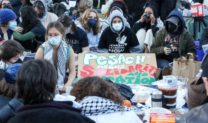 Según se informa, las ramas estudiantiles del SJP respaldado por Soros han organizado ciudades de tiendas de campaña, llamadas “Zonas Liberadas”, que también incluyen Harvard, Yale y Berkeley en California, así como la Universidad Estatal de Ohio y Emory en Georgia.