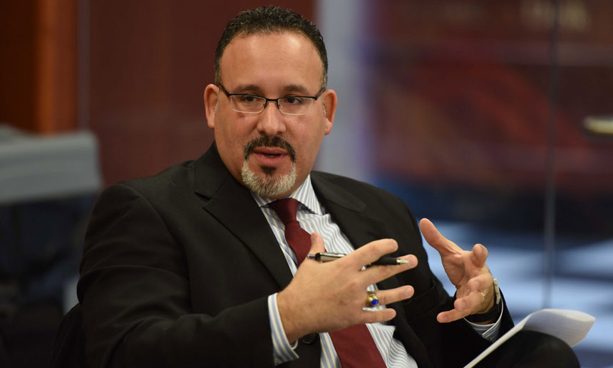 El secretario de Educación de los Estados Unidos, Miguel Cardona [en la imagen de arriba] abordó las irregularidades de ITT y otras instituciones depredadoras, destacando la necesidad de rendición de cuentas en todo el sistema de ayuda financiera federal.