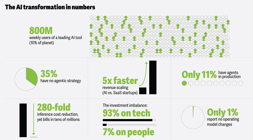 El teléfono tardó 50 años en alcanzar los 50 millones de usuarios. Internet tardó siete años. La telefonía móvil cambió el comportamiento del consumidor. La computación en la nube fue transformadora. Una herramienta de inteligencia artificial generativa líder, ChatGPT, alcanzó aproximadamente el doble de usuarios en dos meses. Tres años después, ChatGPT tiene más de 800 millones de usuarios semanales, aproximadamente el 10% de la población del planeta.